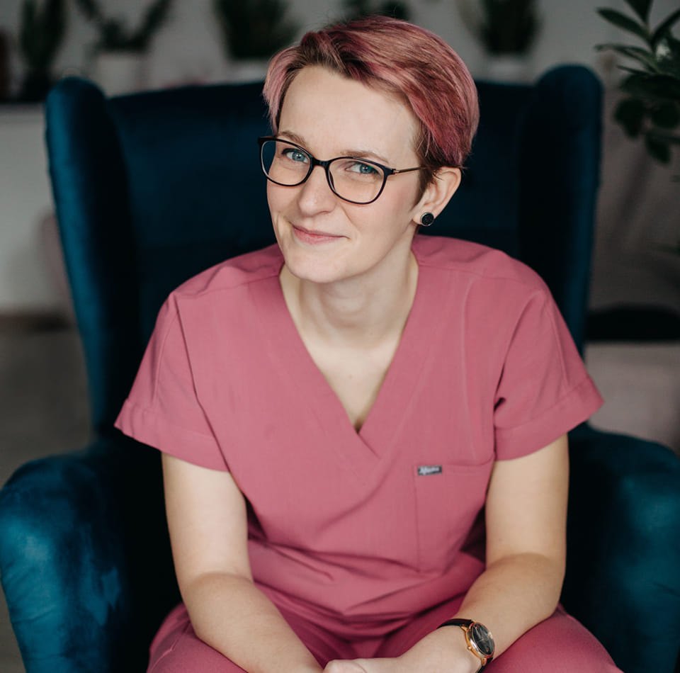 Po pierwsze położna. Specjalistka od laktacji, instruktorka hipnorodzenia oraz doradczyni noszenia w chuście. Zakochana po uszy w naturalnym położnictwie, wierzy w kobiecą moc i nieustannie jej doświadcza podczas pracy i spotkań z kobietami. Prowadzi praktykę położniczą, w ramach której wzbudza na nowo ufność przyszłych i obecnych mam w swój instynkt i swoje możliwości. Przygotowuje do porodu i rodzicielstwa, wspiera w karmieniu piersią, towarzyszy w najważniejszych momentach.